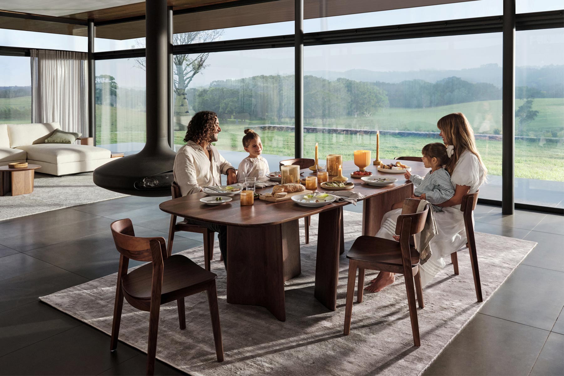 The round edges of the Issho Dining Table in American Walnut work for both family life and entertaining.