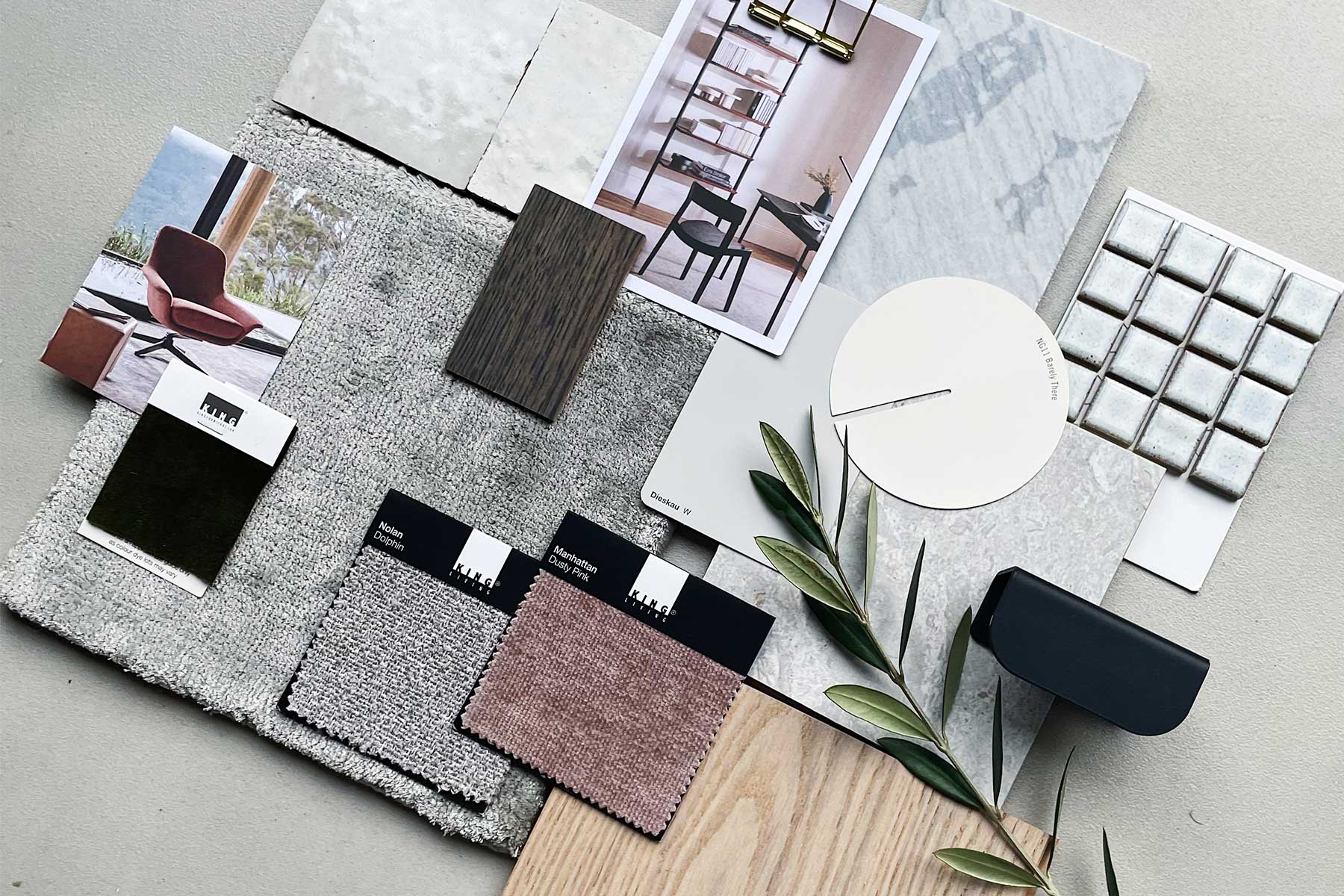 Aimee’s mood board entitled Living in Style uses soft greys and bold textures to create a connection between the living and outdoor space. It’s about finding those moments of escapism when we are working from home to take a breath and relax.