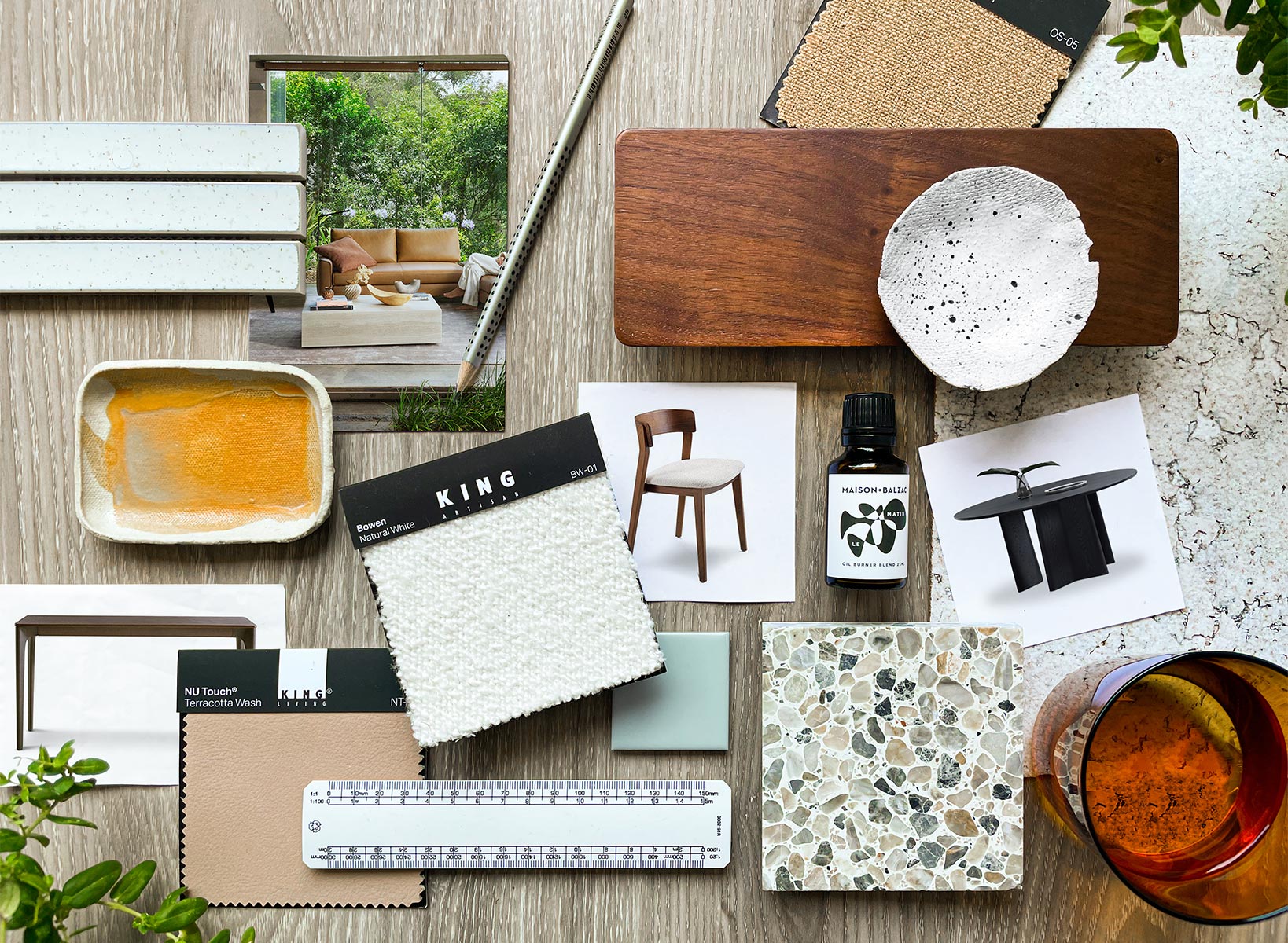 In his moodboard, Jono combines texture and a neutral palette with flexible designs perfect for both working and living.