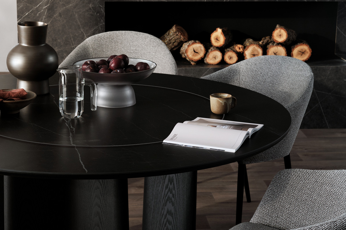 Ceramic dining tables from King Living is crafted from solid porcelain slabs, fired at exceptionally high temperatures. This makes ceramic extremely durable, resistant to UV rays, heat, frost, stains, and perfect for both indoor and outdoor dining.