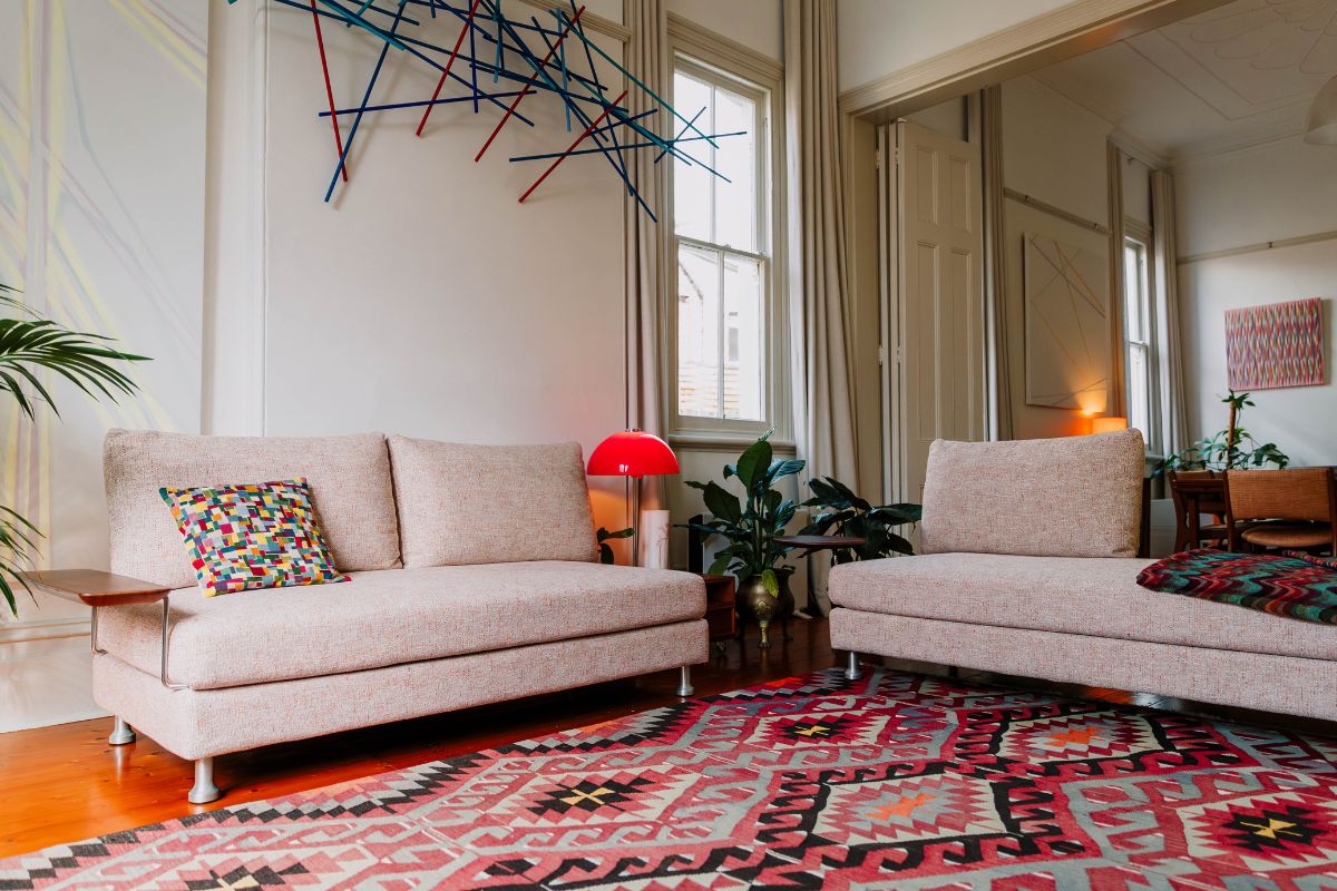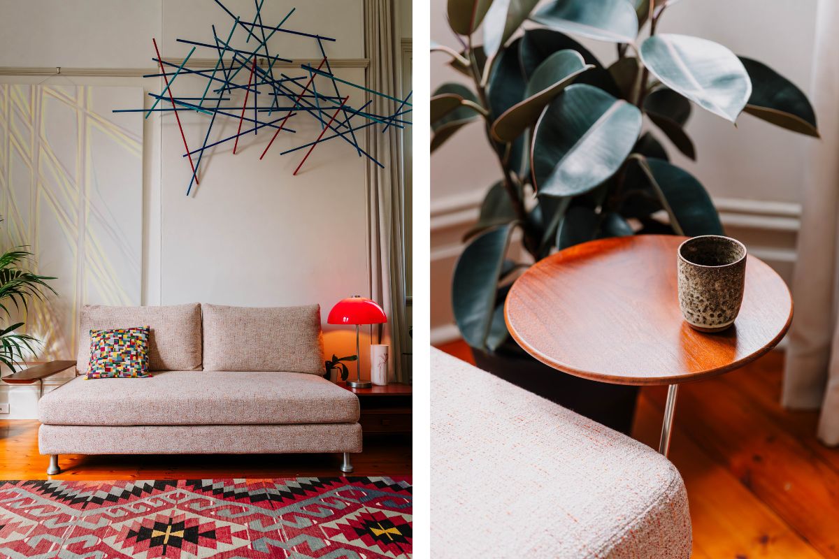 Chris Packer and Selina Samuels live in a Victorian era cottage in the heart of Sydney. With tall sweeping ceilings and large windows throughout, the home is bathed in natural light. As an artist, Chris’s artworks hang on the walls throughout the home, introducing vibrant colours at every turn.