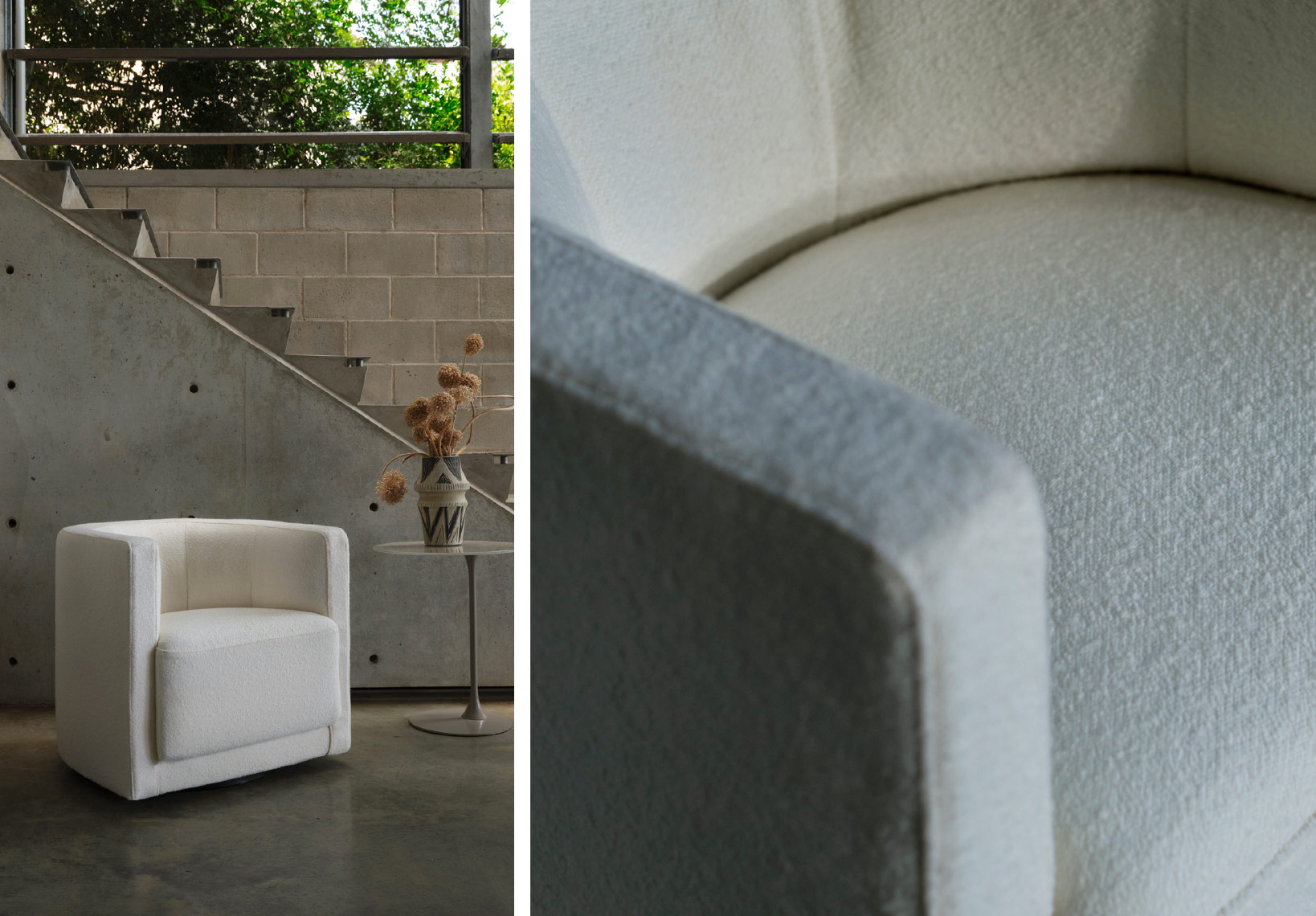 The same principle applies to wool upholstered furniture. Bowen, the latest addition to the King Wool Collection, is a classic boucle, featuring the distinctive looped yarn used by French couture houses. Made from renewable and biodegradable Australian wool, Bowen delivers year-round comfort no matter the season.