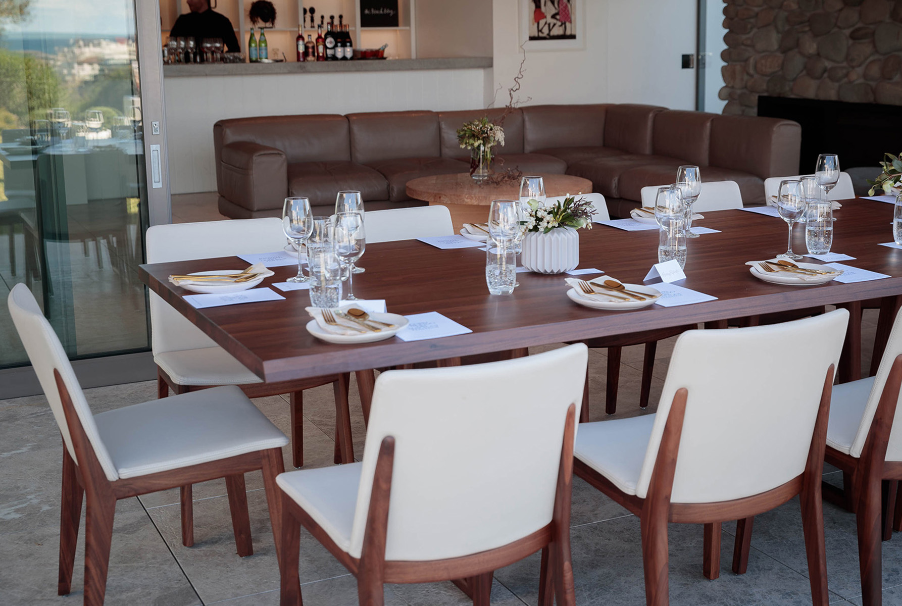Seated on King Living’s Aspen dining table and chairs, the table was brought to life through natural muted tones and enhanced by the wondrous garden and surrounding beauty of the coast.