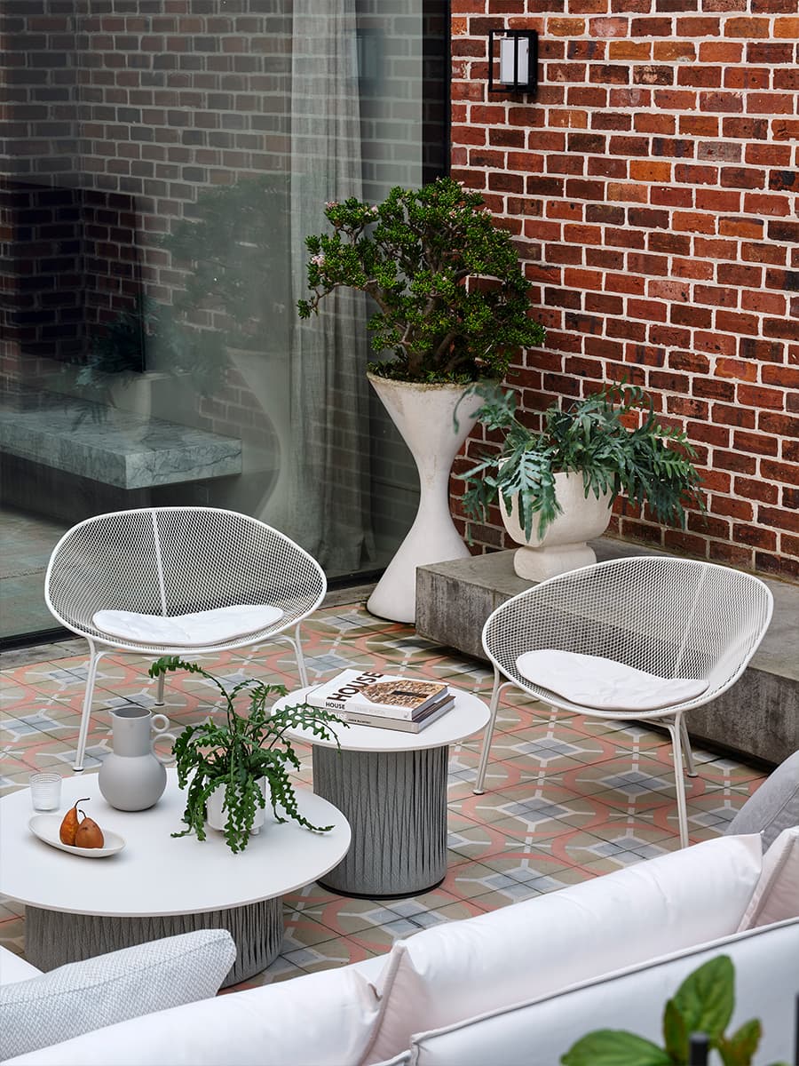 In another corner, the Luna Outdoor Chairs are nestled around an Oasis Outdoor Coffee Ottoman to maximise those smaller garden nooks – ideal for a quiet retreat or to share an afternoon martini with friends.