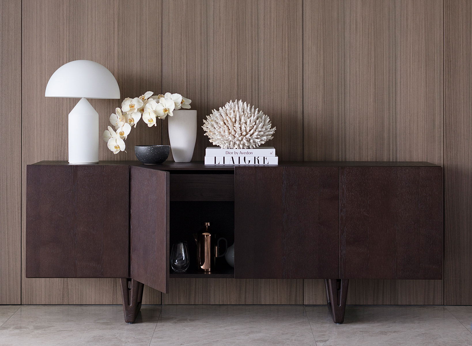 The Aspen Sideboard features the signature sculpted V-shaped legs of the Aspen range whilst offering a variation in functional design. With the option of a two-door, one-drawer sideboard or a four-door sideboard, the new products offer incredible diversity. Adjustable shelving with invisible German hardware allows the sideboard to be seamlessly integrated into any home with ease.