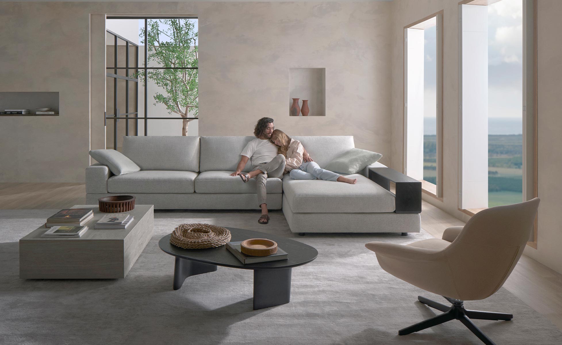 Fleur unites a timeless silhouette with ingenious folding backrests and adjustable arms, transforming from low profile to high profile with a single movement, offering two distinct styles in one design.