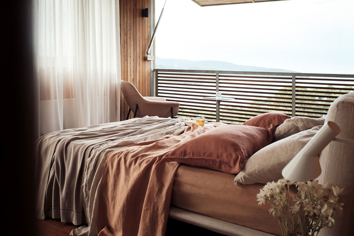 Consider what makes you feel comfortable when you unwind. It might be a warm hot water bottle, your favourite hand cream or a simple glass carafe beside the bed. Your guests respond to the same considered details.