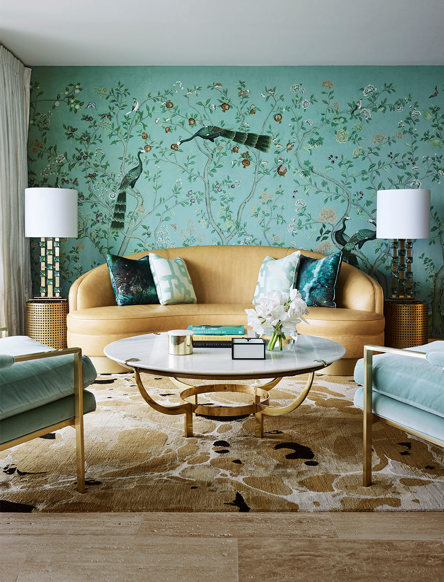 With its bold peacock wallpaper, this living room in Sydney's east really struts its stuff. "In a new penthouse, the clients wanted us to layer the space with pattern and texture to create a sense of warmth in contrast with the modern build," says Greg. Drawing inspiration from a Ray Cook painting already owned by his clients, he opted for an exuberant design with a touch of luxe.