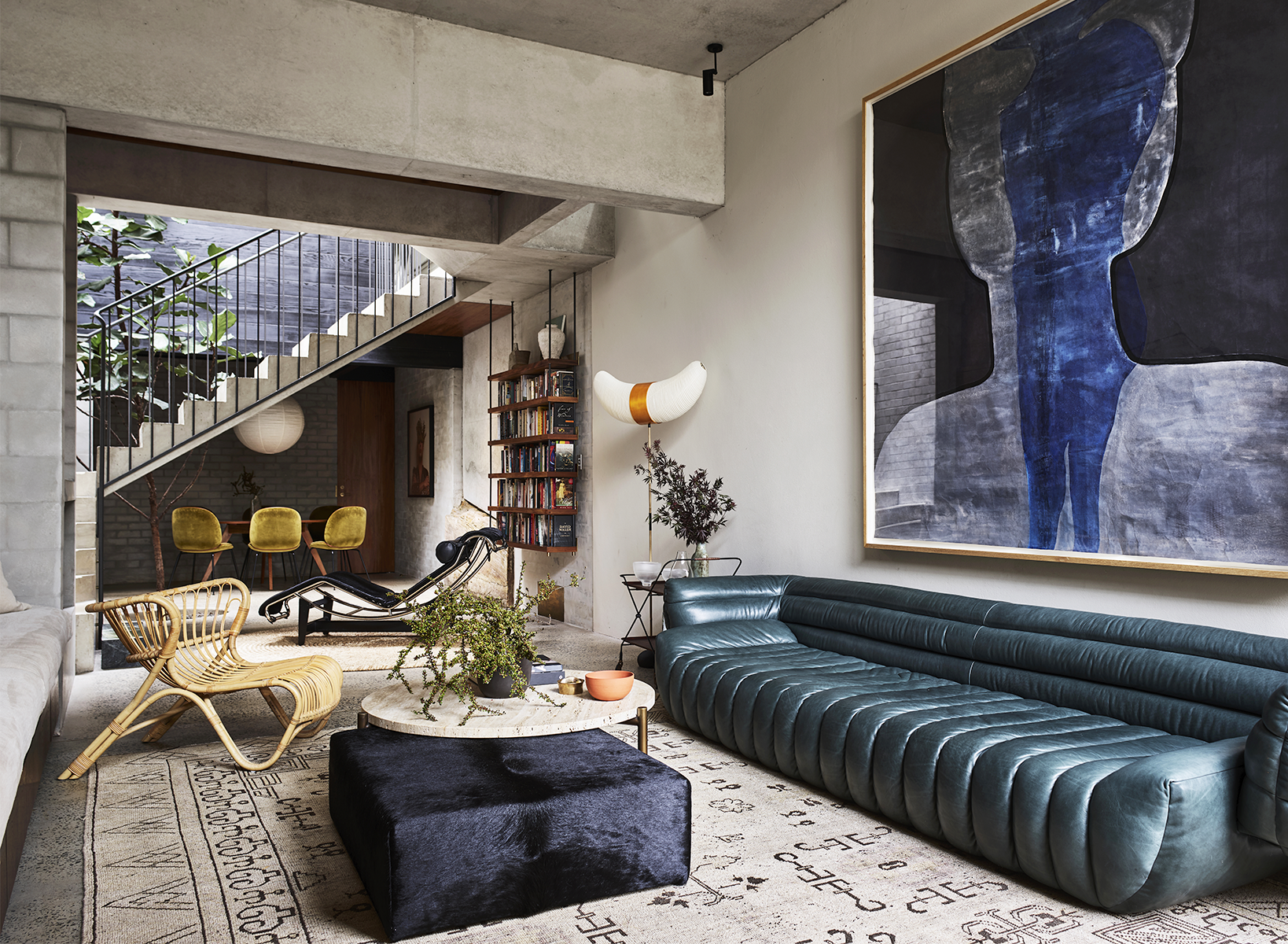 A pivotal element in the renovation of this home in Sydney's inner west was the owners' desire to plant a large fiddle-leaf fig within the new space – and it stands proudly in the atrium behind the stairs. The strong architecture of the building provided inspiration aplenty for the Arent&Pyke team, whose brief was to bring life to the living area.
