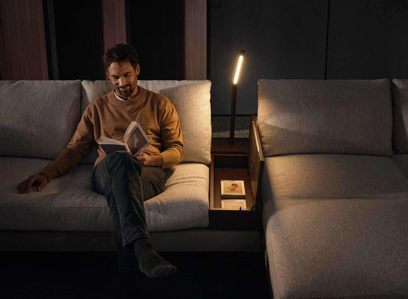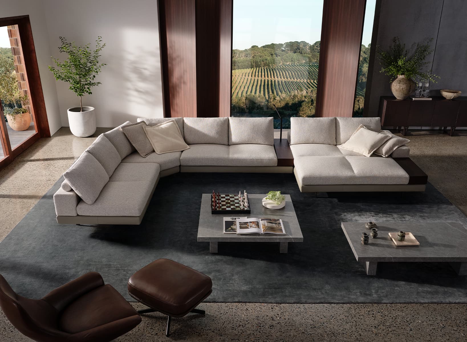Personalised to perfection, the modular Kato features integrated accessories designed for your lifestyle, offering convenience side by side with deep-seated comfort.