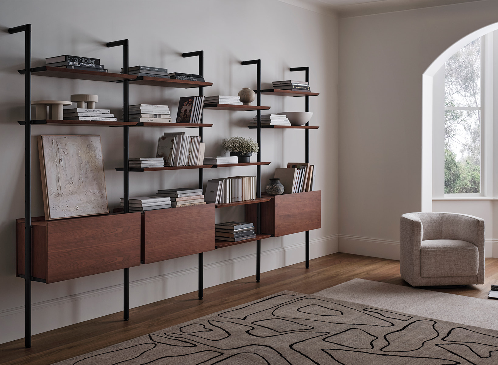 The concept of modular shelving originated in the late 1940s, championed by leading mid-century designers like Poul Cadovius, Dieter Rams and Adriaan Dekker. Many of those early designs, including the Royal System and the 606 Universal Shelving System, are still in production today.