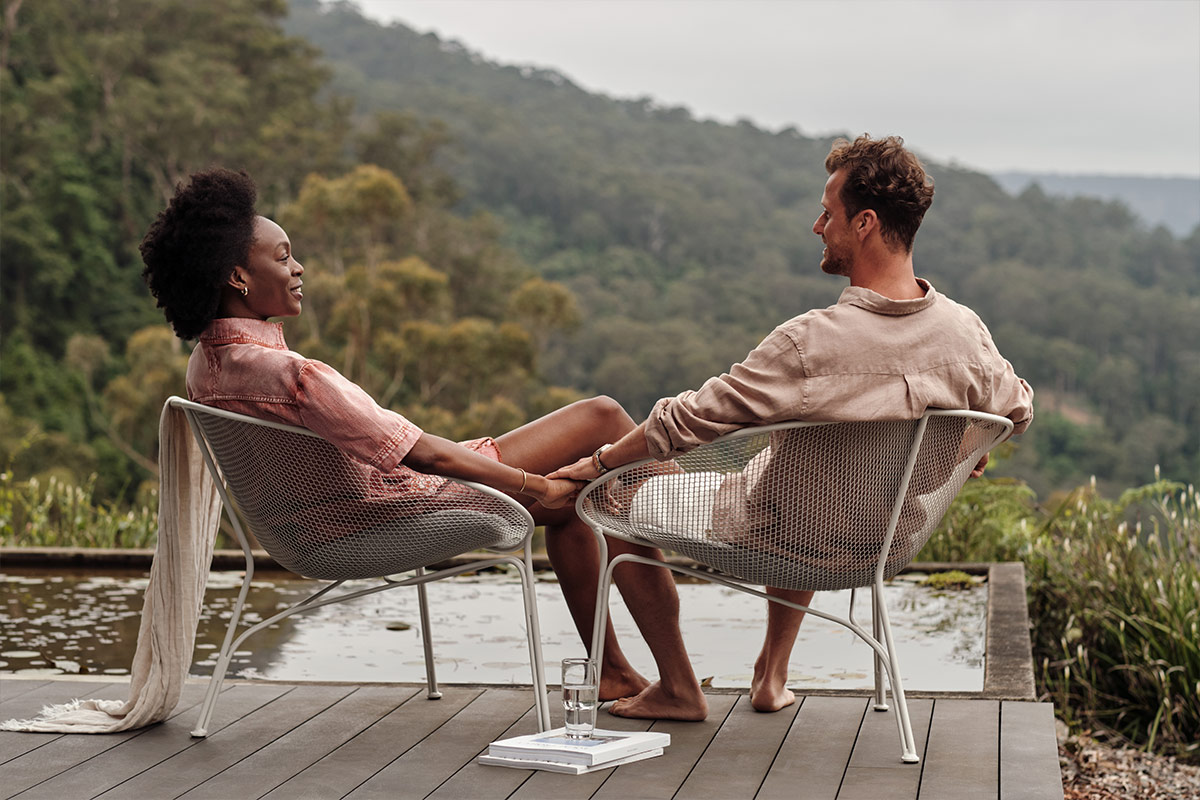 Moulded from an expanded mesh, the Luna Outdoor Chair showcases a relaxed aesthetic synonymous with Australian design.