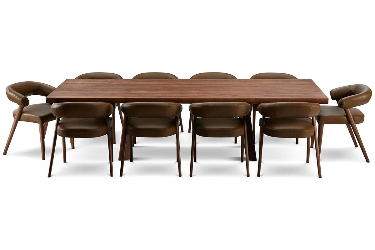 A rectangular dining table like Heritage anchors the room with its strong, linear presence and extendable design, allowing you to accommodate up to ten guests when needed. Sculpted seating like the Heirloom Dining Chairs introduce softness with contoured curves, gently wrapping you in lasting comfort.