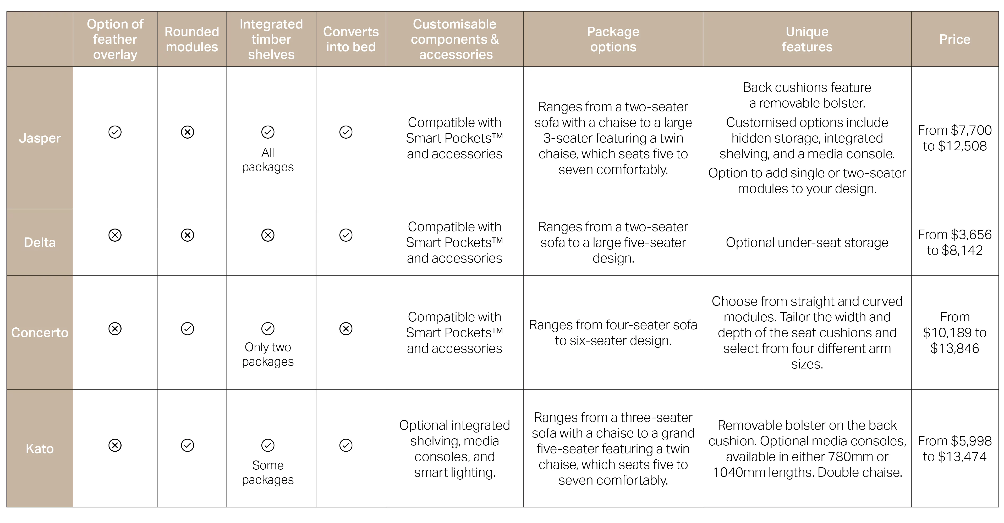 Whether you are contemplating purchasing a Jasper, Delta, Concerto or Kato, this article explores what each modular sofa has to offer.