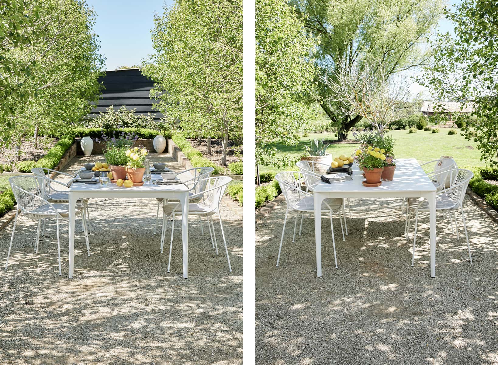 The formal garden space at Rosedale is the perfect setting for this relaxed and informal dining space.