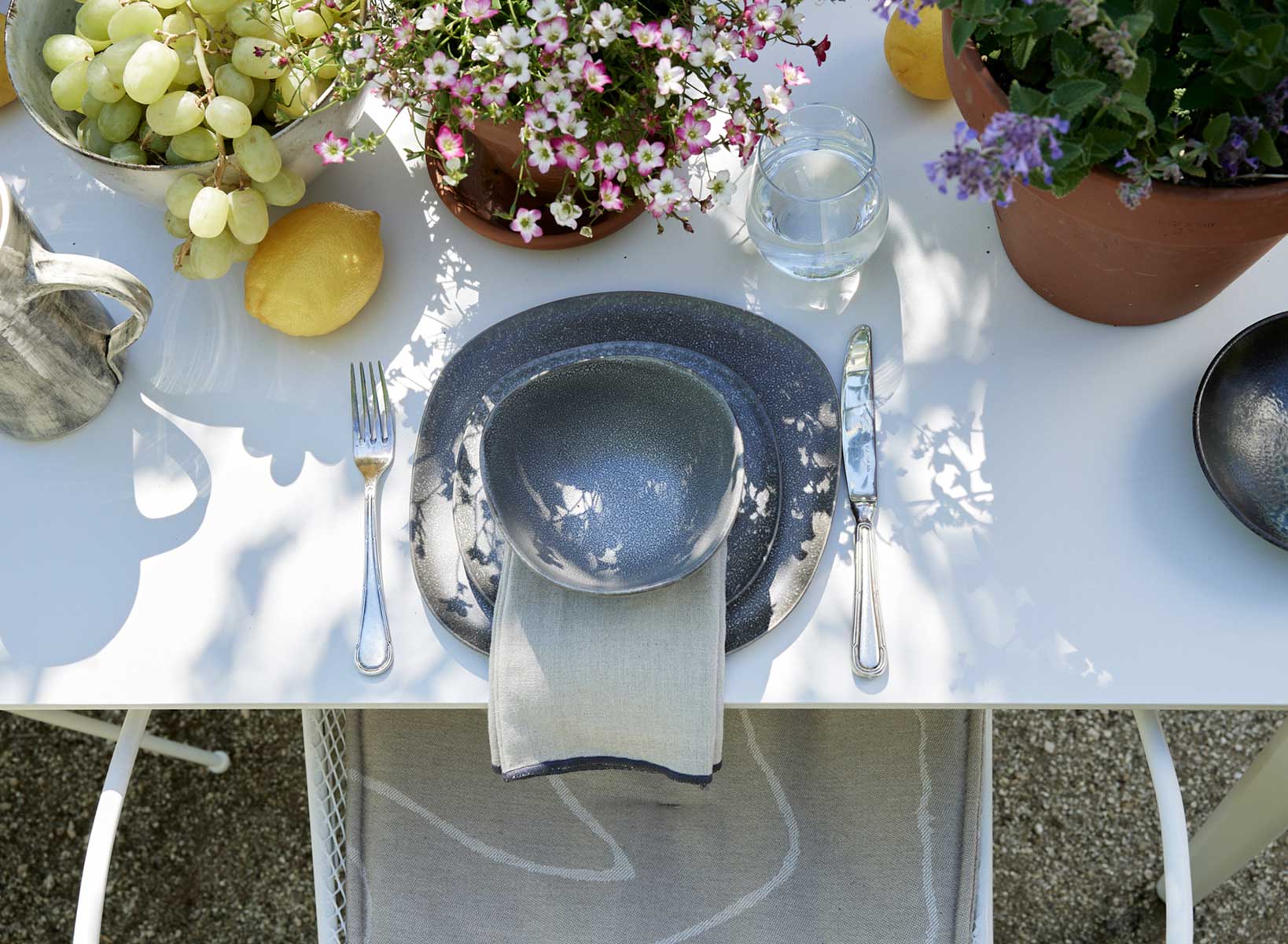 In contrast to the formal garden space, Steve has styled an informal and loose table, ideal for a long lunch or a relaxed Sunday breakfast. It’s thanks to the versatility of the Quay Ceramic Dining Table that can seamlessly transition from space to space.