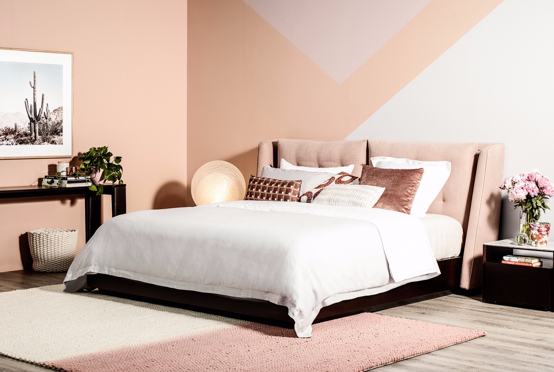 For the second look, Darren created a flirty, fun and feminine room featuring the Symphony Storage Bed. The palette of blush, salmon and cool grey strikes a steadiness between both warm and cool as the colours are lively but not overbearing, this forms a more relaxed and softer look whilst exemplifying the relaxed luxurious feel of the bed.