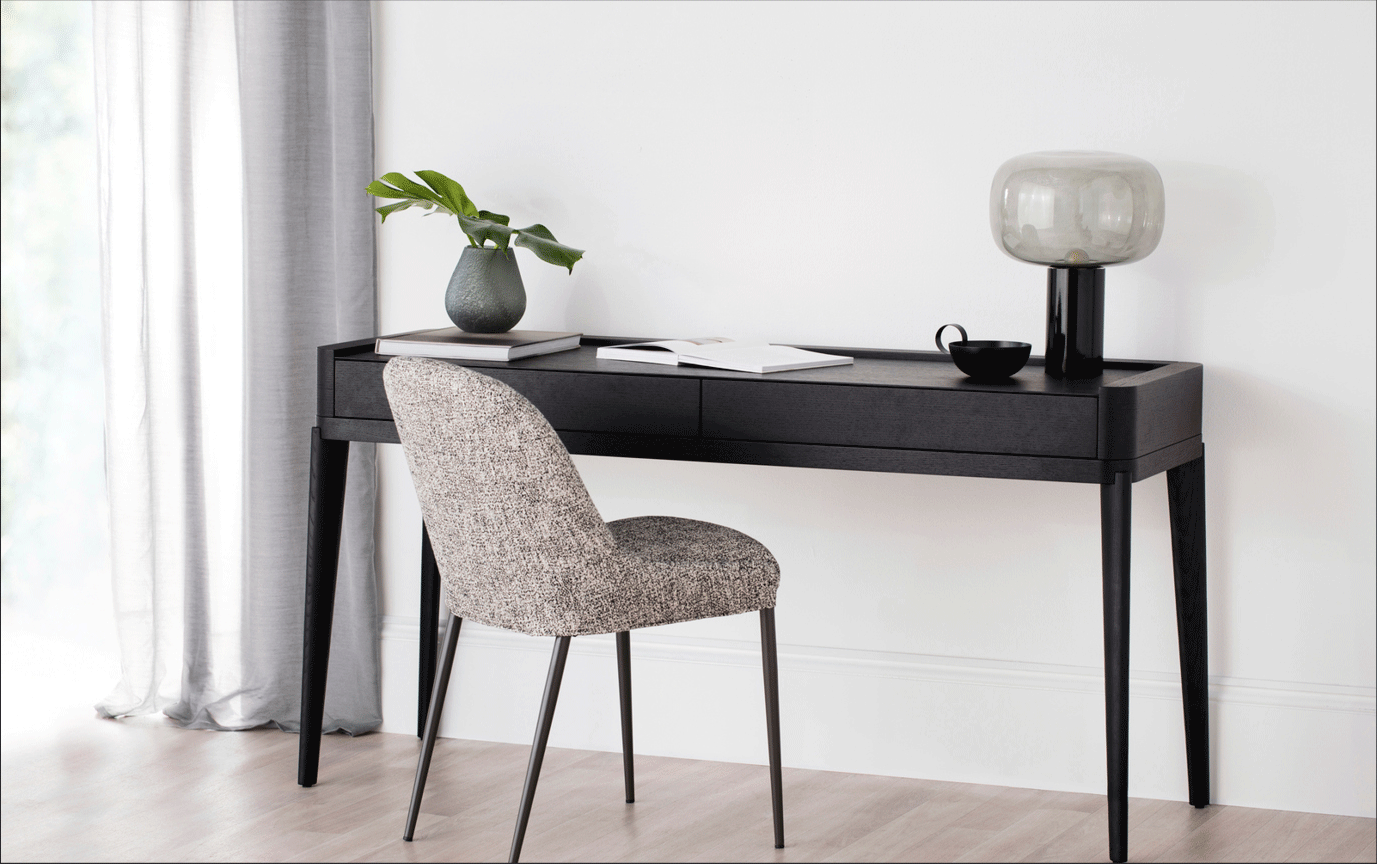 Rendered in premium timber veneer, the subtle lines and rounded edges of the Dainelli Tuscan Desk are elegantly balanced with an impressive sturdiness for long-lasting performance. Complemented with soft-close drawers on whisper-quiet runners for minimal disturbance.