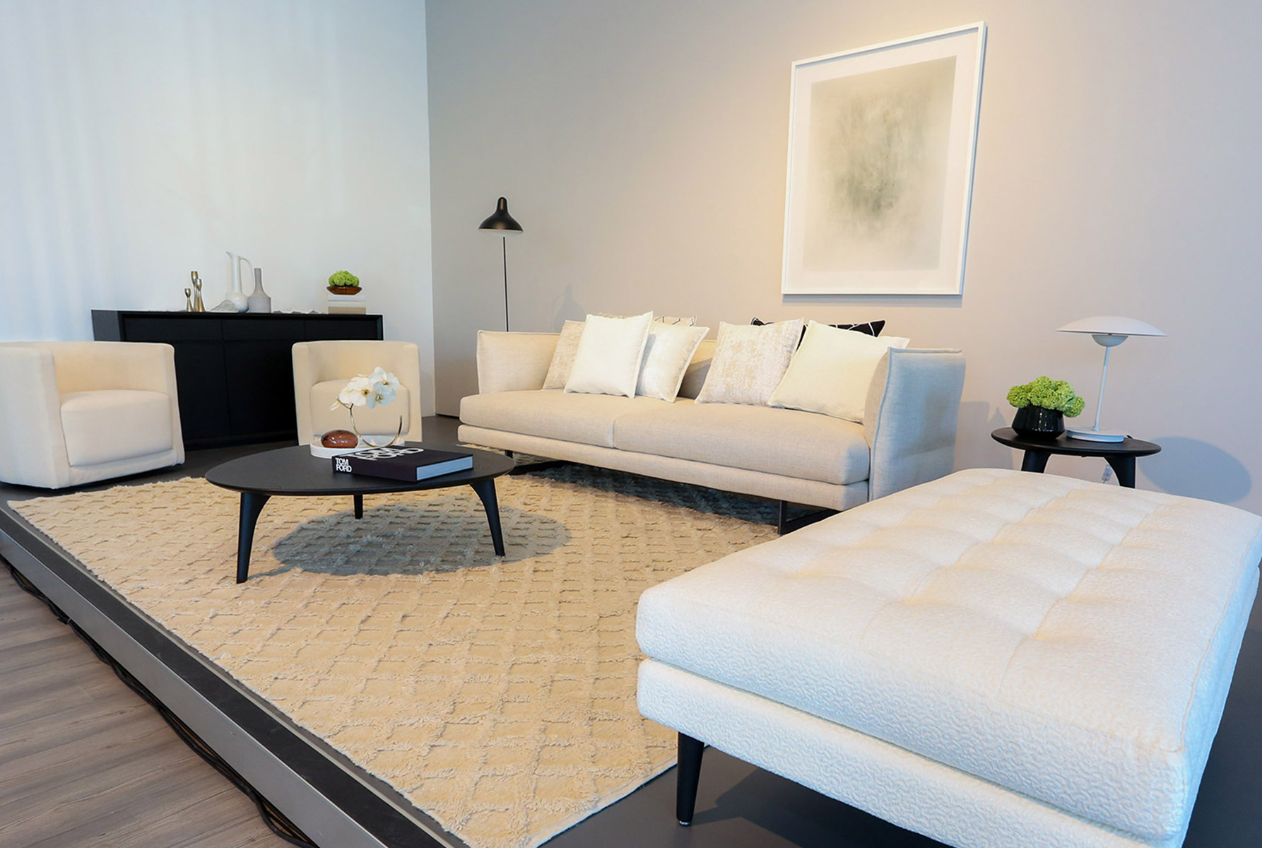 Hosted at the Adelaide Showroom in Keswick, guests joined us for drinks and canapés. For this particular look, Gardner drew inspiration from his visit to the Maison et Objet design event in Paris earlier this year, and hoped to bring a glamorous, chic feel to the display. With the Zaza taking centre stage in a timeless oatmeal, textured Mokum fabric, the pair discussed Charles Wilson’s design triumph, as well as current design trends. Styled with lavish, Art-Deco Inspired “Zazina” cushions, the Zaza was the ideal piece to re-create the image of a lofty Parisian apartment. Alongside, Oliver Tub Chairs upholstered in a creamy, plush velvet, as well as the elegant Uno Ottoman in a pearl shade, truly completed the sophisticated space.
