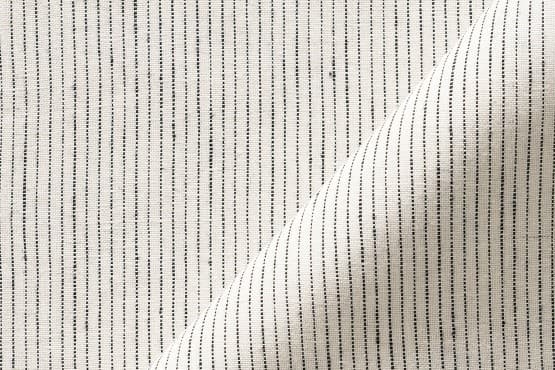 A relaxed pure linen in a subtle woven pinstripe in colourways that range from gently contrasting neutrals to bold monochromes. Soft underhand and cool to the touch, Peninsula Pinstripe is best suited to light use and cushions.