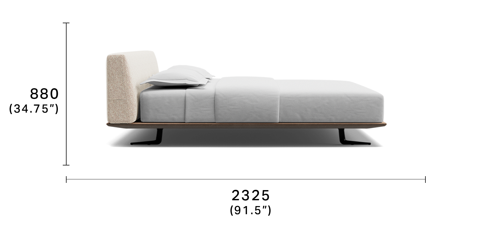 King size bedhead and bed base with optional smart accessories. Customise in your choice of 200+ fabrics and leathers.