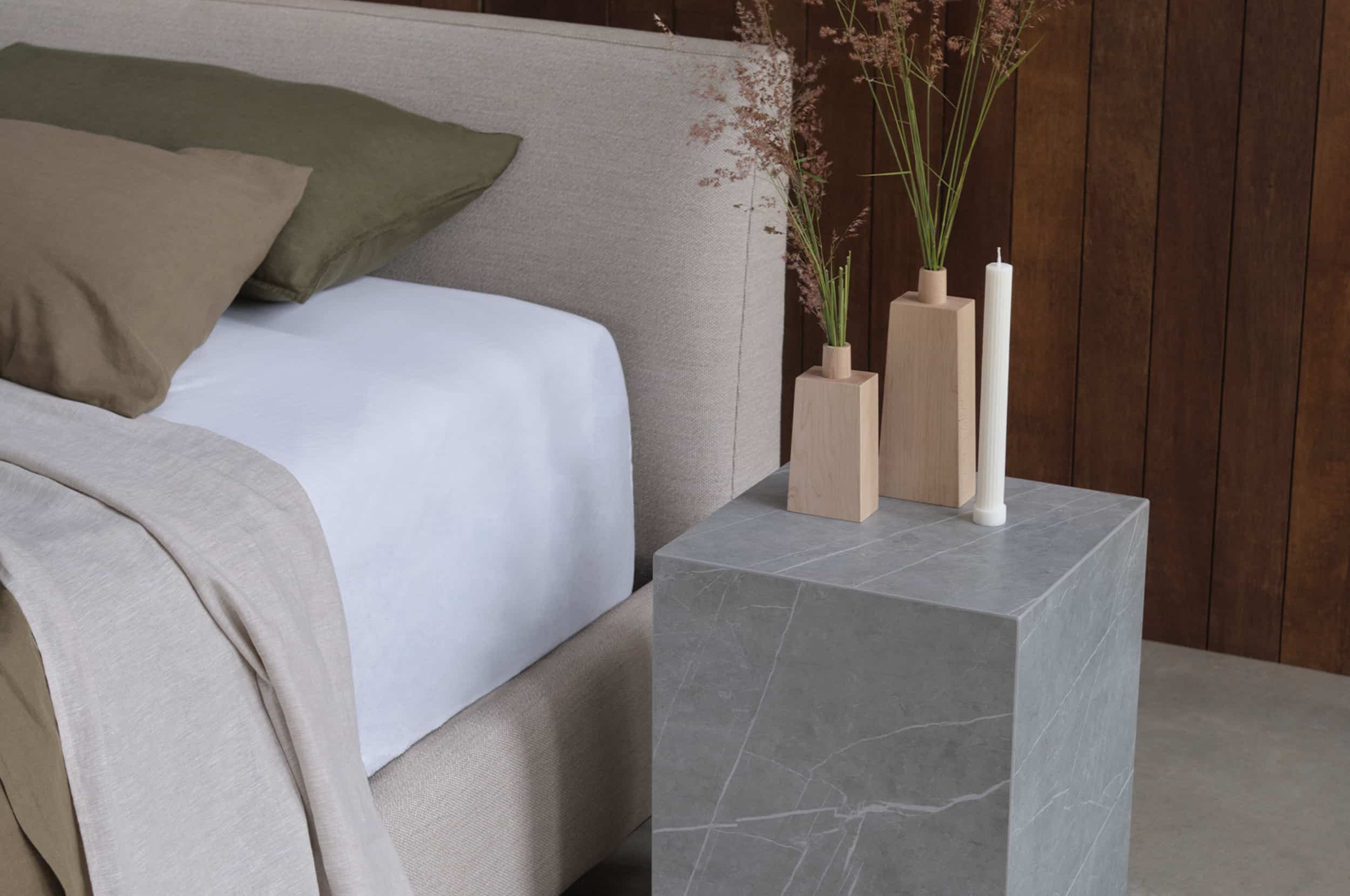 - Soft bedhead and base feature removable covers that can be customised in your choice of premium fabric or European leather.