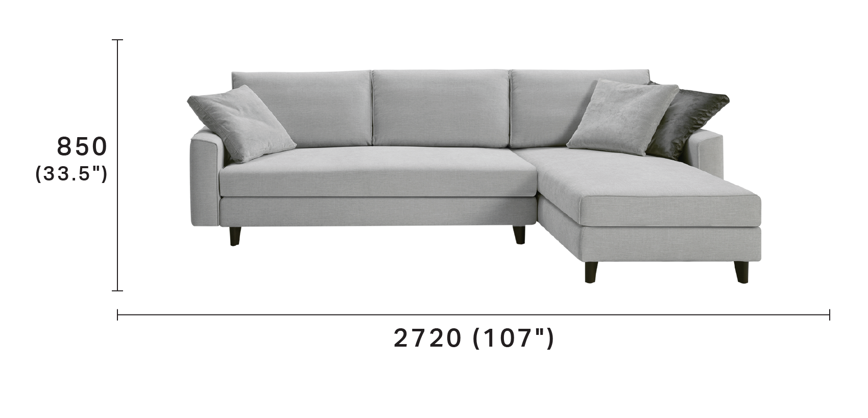 Modular sofa with chaise, 2 Panama cushions in matching fabric or leather, 2 sets of bed brackets and a set of magic joiners. Prices based at fabric starting price.